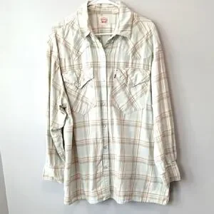 Levi's Long Sleeve Plaid Button Down Shirt Womens XL Western Chores Cowgirl