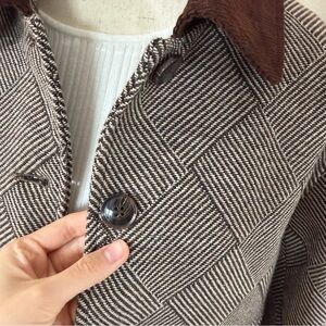 Elevate your wardrobe with this elegant brown herringbone blazer. Perfect for both professional and casual settings.