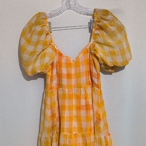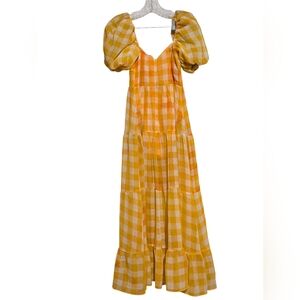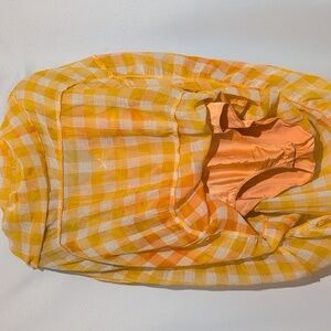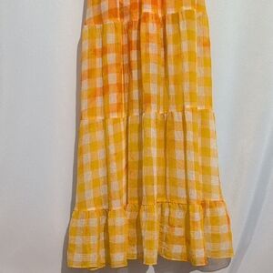 Vibrant gingham design. Elegant maxi length. Ideal for warm weather with a built-in Bodysuit