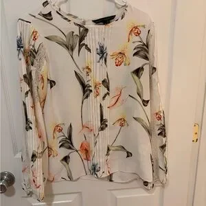 Chic floral blouse with vibrant design. Lightweight and stylish. Ideal for versatile wear.