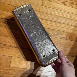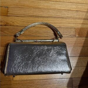 Vintage Gold Metallic Hard Case Clutch structured handbag handle 50s-60s shiny Rare