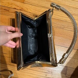 Vintage Gold Metallic Hard Case Clutch structured handbag handle 50s-60s shiny