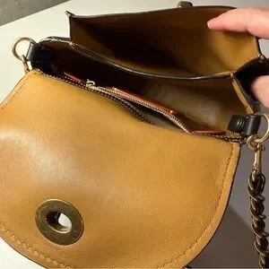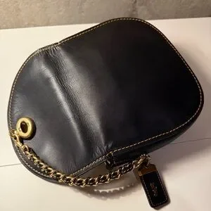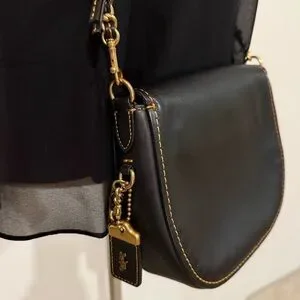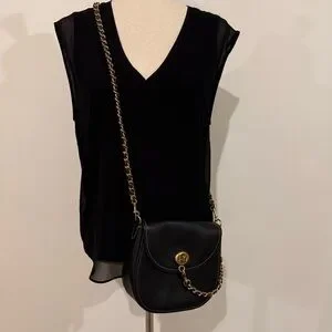COACH 1941 Turnlock Saddle Crossbody Bag in Black Leather & Metal Braided Strap