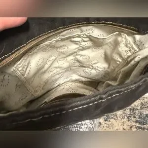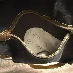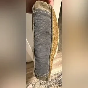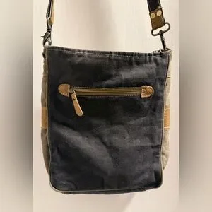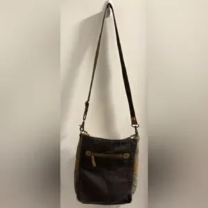 This bag is in excellent used condition. It was used very little. Zip closure. Two side pockets on one side and one zip pocket inside bag. Two large outter pockets. Leather is not scuffed. Comes from a pet free and smoke free home. Materials: Canvas and Leather
