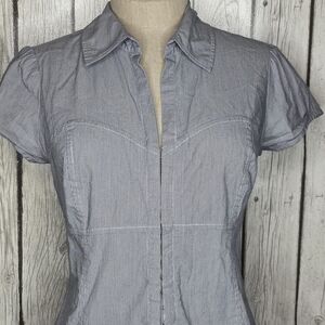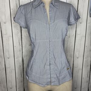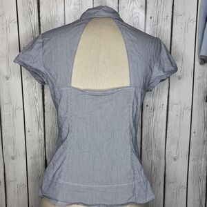 Vintage Guess Pinstripe Hook & Eye Back Cutout Corset Top L