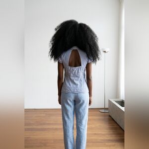 This rare vintage find perfectly captures the late 90s/early 2000s Guess aesthetic. With structured tailoring inspired by the Georges Marciano era, this top features a corset-style front and a daring triangular back cutout.