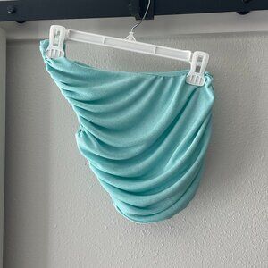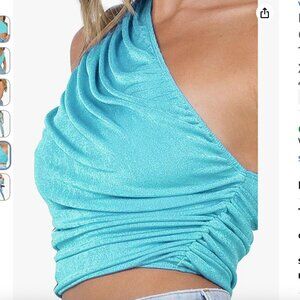 Turquoise Ruched One Shoulder Sleeveless Crop Top