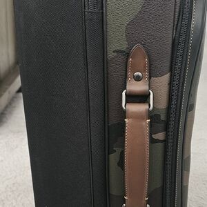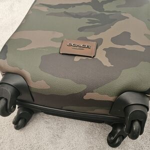 Stylish and durable, this Coach Carry-on roller bag features a striking camo print. Perfect for those weekend getaways, it combines functionality with a modern design.