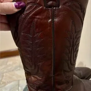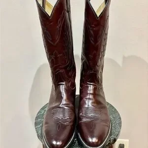 Tony Lama Deep Burgundy Brown Leather Western Boots