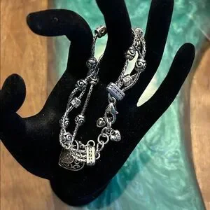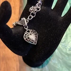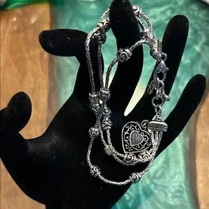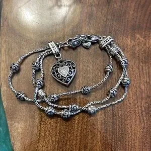 Brighton Reno Heart Bracelet features a silver-plated triple chain design, EUC