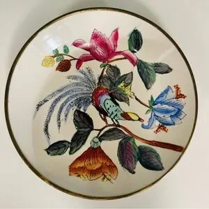 Gorgeous Ceramic And brass vintage Asian bird bowl