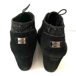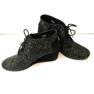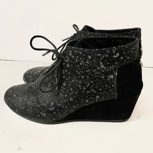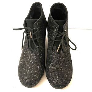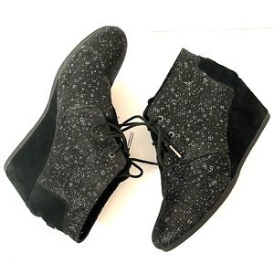 TOMS Desert Wedge Suede Heel Booties Black Shimmer Lace Up Ankle Boots Size 12