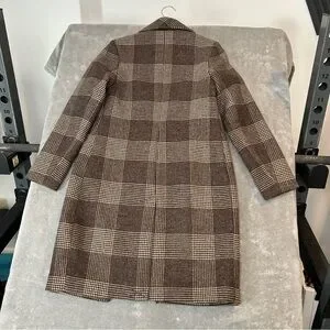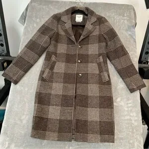 Abercrombie & Fitch The A&F Dad Coat Plaid Brown Long Overcoat Women's XXSP