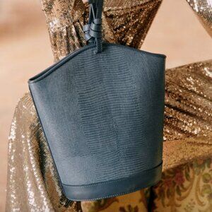 Sézane NWT Marli Bucket Bag in Embossed Denim Bi-Material