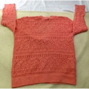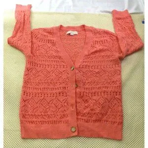 LOFT Coral Open-Work Knit V-neckline Crochet Cardigan Med