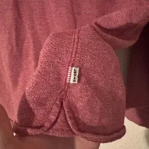 Levi’s Marled Red Hoodie Sweatshirt – Women’s Size Medium. Casual athletic hoodie in a marled red fabric with a flattering slim fit. Soft and comfortable, perfect for layering, lounging, workouts, or everyday casual wear.