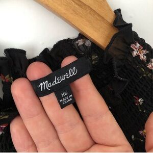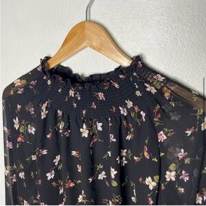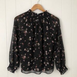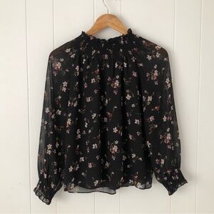 Madewell Floral High Neck Ruffle Balloon Sleeve Blouse Top
