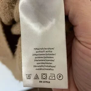70% acrylic, 24% polyester, 3% elastane, & 3% metallic