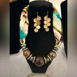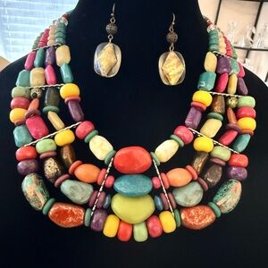 Vintage Colorful Beaded Necklace and earrings 6 necklaces 2 earrings