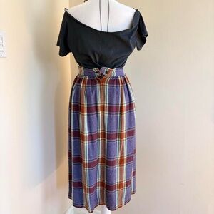 Vintage 60s wool plaid pleated skirt cottagecore retro academia antique 50s XS