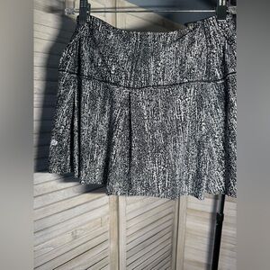 Excellent used condition! This breezy Lululemon Lost In Pace running skirt features the eye-catching "Air Time White Black" abstract print. Designed for high-performance movement, it offers the perfect blend of style and functionality for the trails, tennis court, or golf course.