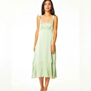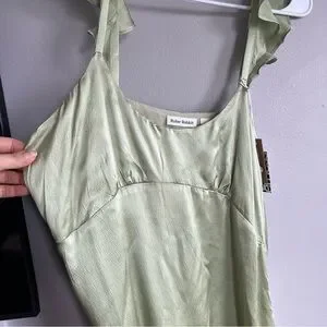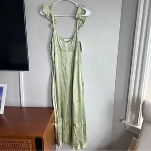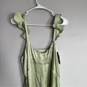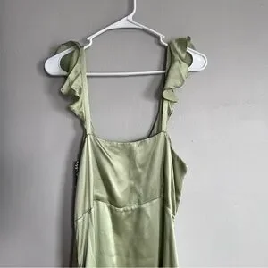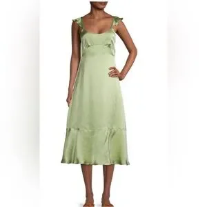Beautiful sage green silk dress. Ruffle shoulder straps. Tiered fit