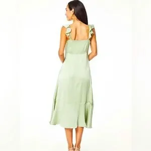 Roller Rabbit Quinn Silk Midi Dress Large Sage Green NEW