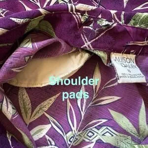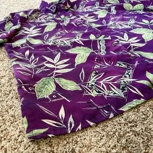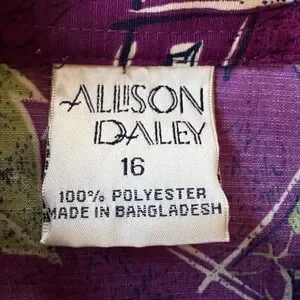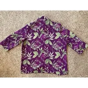 Vintage Allison Daley Purple Tropical Button Front Blouse Size 16 Shoulder Pads