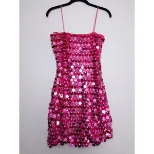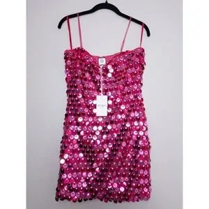 NWT Runaway The Label Cortez Mini Dress M Pink Sequin Sleeveless Stretch