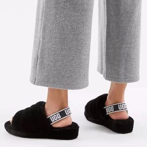 UGG Fluff Yeah Slide Sandals Platform Black Fuzzy Womens Size 8