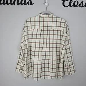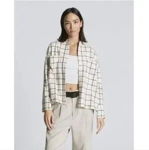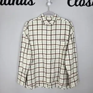 Everlane Boxy Flannel Cream Brown Plaid Button Down Shirt Sz Women's Medium NWT