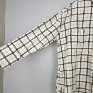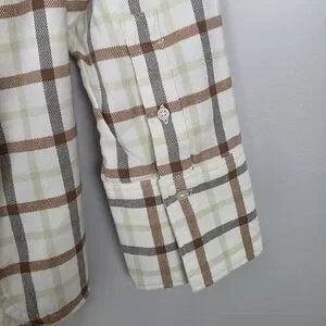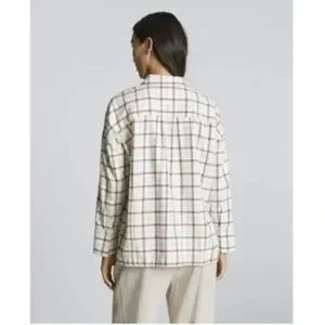 Everlane Boxy Flannel Button Down Shirt Cream Brown Plaid Cozy.