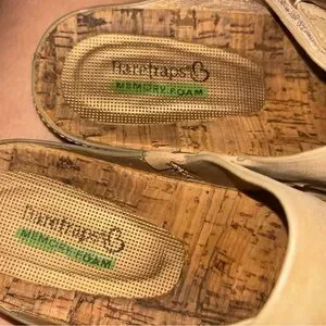 Beige double-strap sandals with cork footbed and adjustable velcro straps from Baretraps, super comfy memory foam sole and lightweight design perfect everyday summer sandals, size 7, light wear, and I’ll clean before shipping