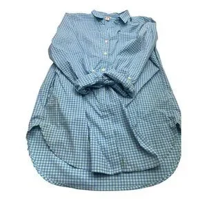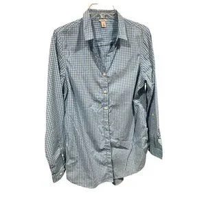 L.L.Bean Womens Medium Button-Up Gingham Shirt Blue & Green Long Sleeve 23i