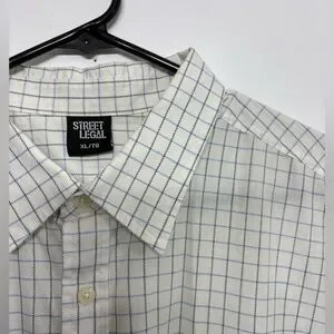 Street Legal short sleeve button-up shirt featuring a blue grid/check pattern on a white/cream background. Classic and versatile style, perfect for everyday wear, work, or casual outings. Lightweight and comfortable fabric.