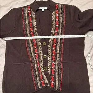 David Brooks 100% Wool Embroidered Cardigan Sweater Jacket Brown Floral Size L