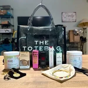 Brand New and super cute describes this Zenana Clear Shimmer Plastic Stadium Approved Tote Bag Literally Loaded with 9 Expensive Designer Goodies!
