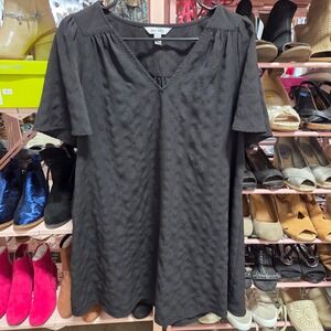 Nine West Black Textured V-Neck Flutter Sleeve Blouse Top Womens Size Medium