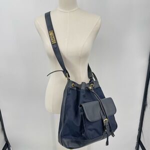Moschino Vintage Bucket Redwall Nylon Navy Blue Shoulder Bag Crossbody