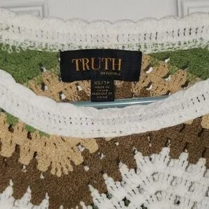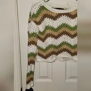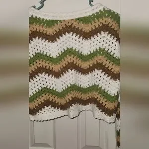 Truth by Republic Green Brown White Chevron Cropped Crochet Sweater