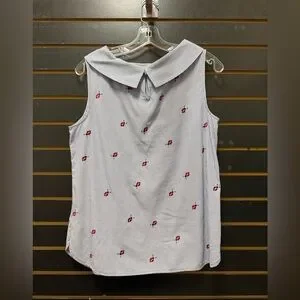 Talbots Ladybug Embroidered Striped Sleeveless Blouse Peter Pan Collar Medium