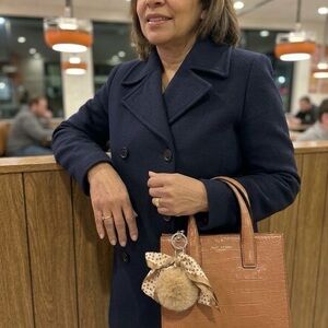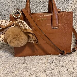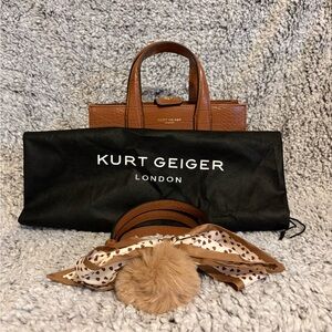 Kurt Geiger brown handbag/crossbody. Comes with dust bag and bag charm. Minor wear on corners, barely noticeable. See last four pics.