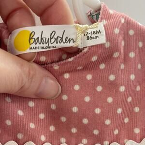 NWT Baby Boden Pinnie Dress Blossom Pink Spots Ducks 12-18 Months. No flaws to note.