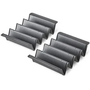 V-Shaped Baking Pan Set will help you make healthy snacks like fruit and veggie chips, or hard-shell tacos and creative desserts. The unique V-shaped wells let you make about twice as many chips as you can on a sheet pan.