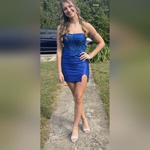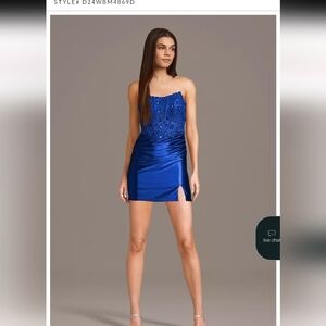 David's Bridal Strapless Sequin Appliqué Mini Dress - Royal Blue