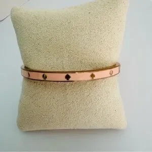 Authentic kate spade new york “Spot The Spade” hinged bangle featuring glossy blush/pink enamel with signature spade accents and a push-lock clasp for easy on/off. A classic KS stacking piece that gives preppy polish with a soft, feminine pop of color.