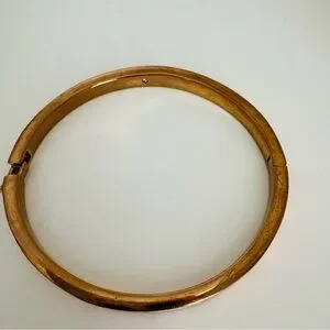 Condition: Pre-owned. Enamel remains pretty and wearable. Visible interior patina/tarnish and wear near the hinge/clasp as shown in photos. Clasp aligns and closes (please review all close-ups).
