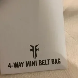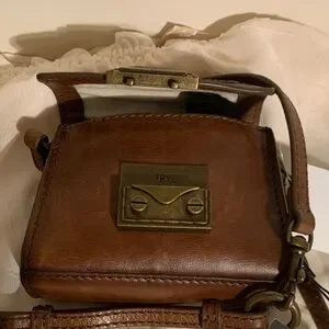 Stylish Frye 4 way mini bag in rich tan leather. Features a secure clasp and sleek design.