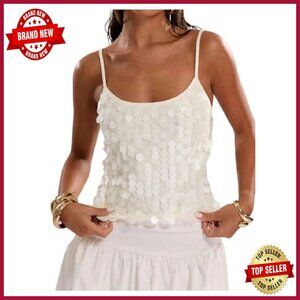 Sparkly Sequin Spaghetti Strap Scoop Neck Camisole Top Women's Summer Party