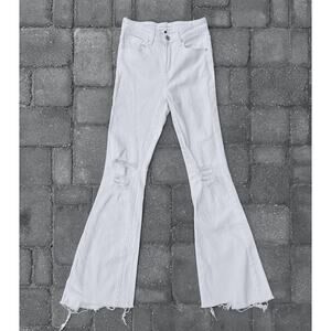 Elevate your denim collection with these stylish Risen high rise distressed flare jeans!
